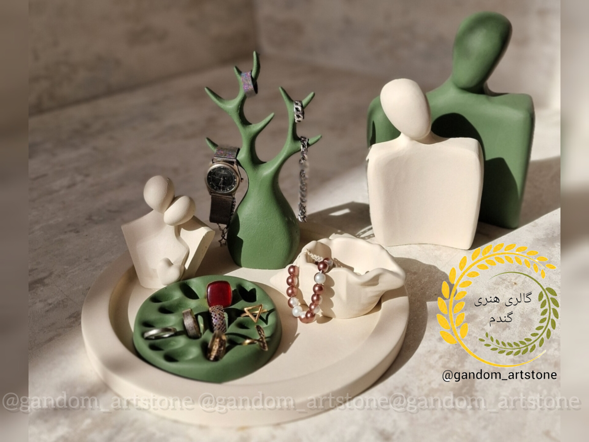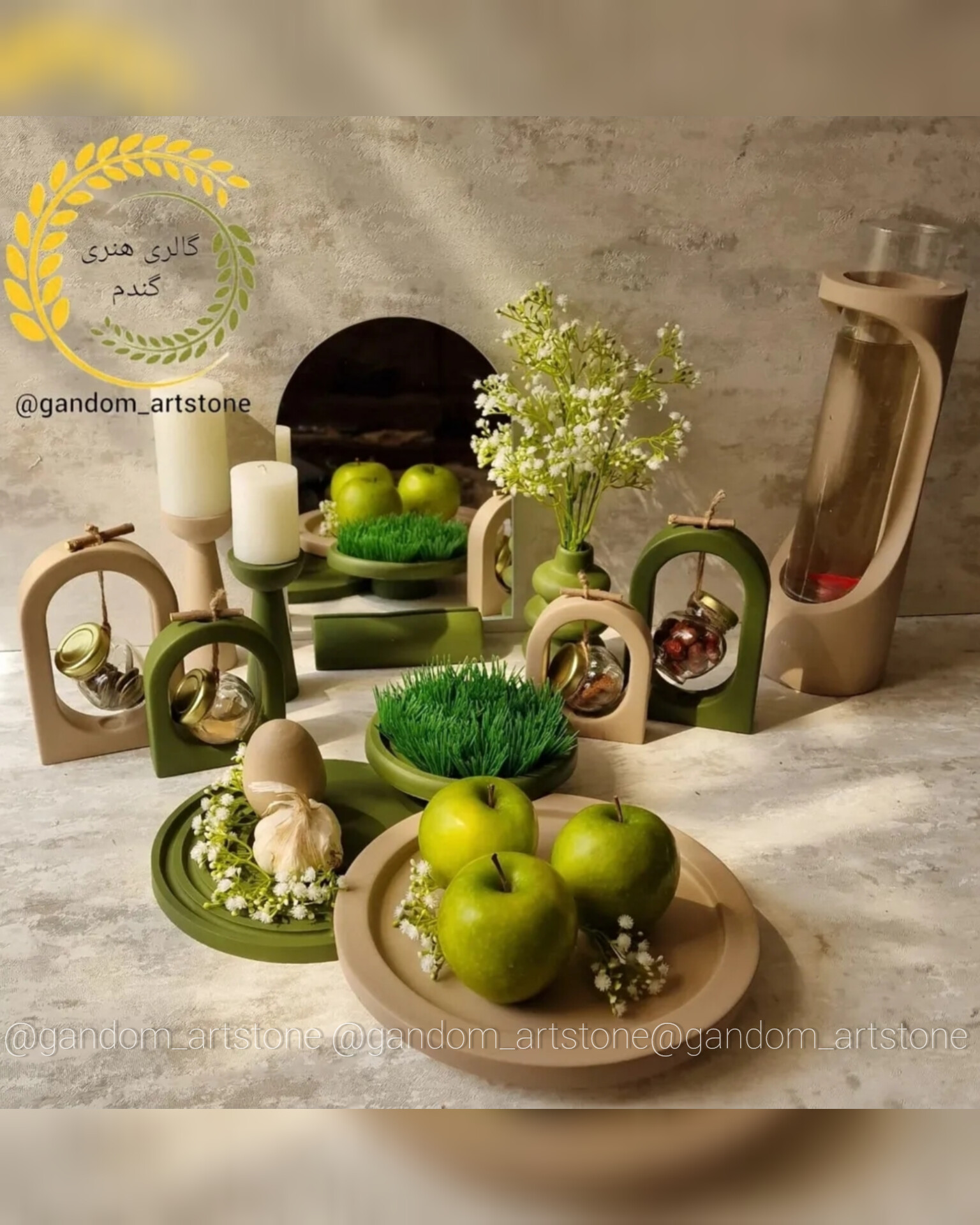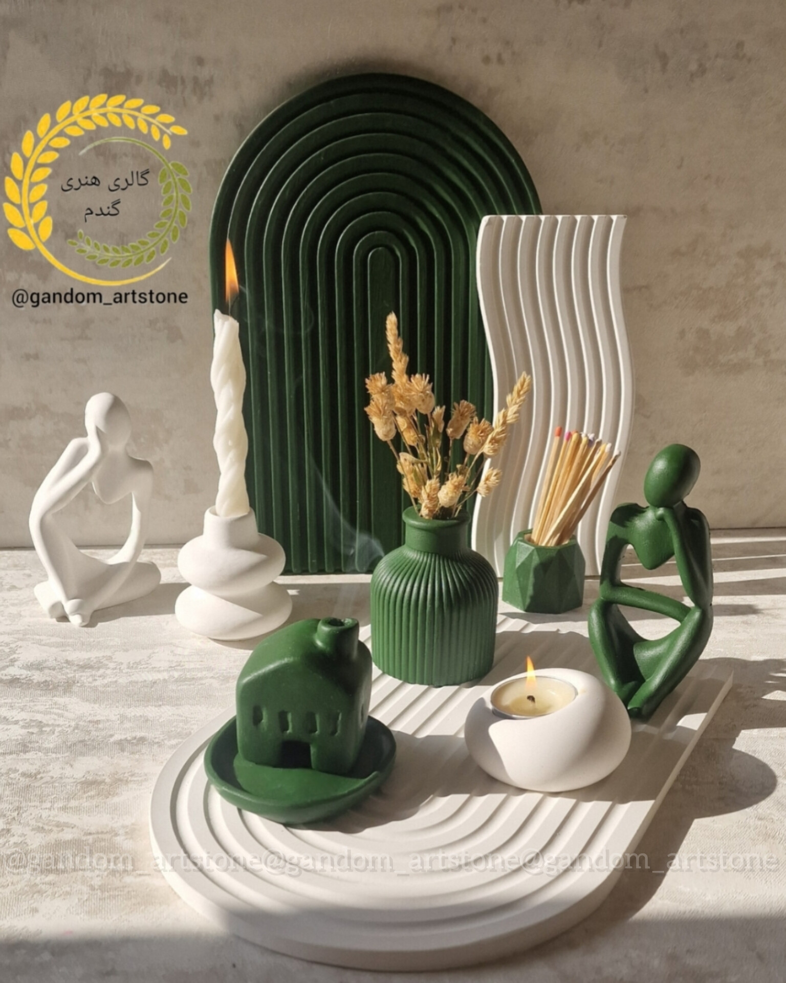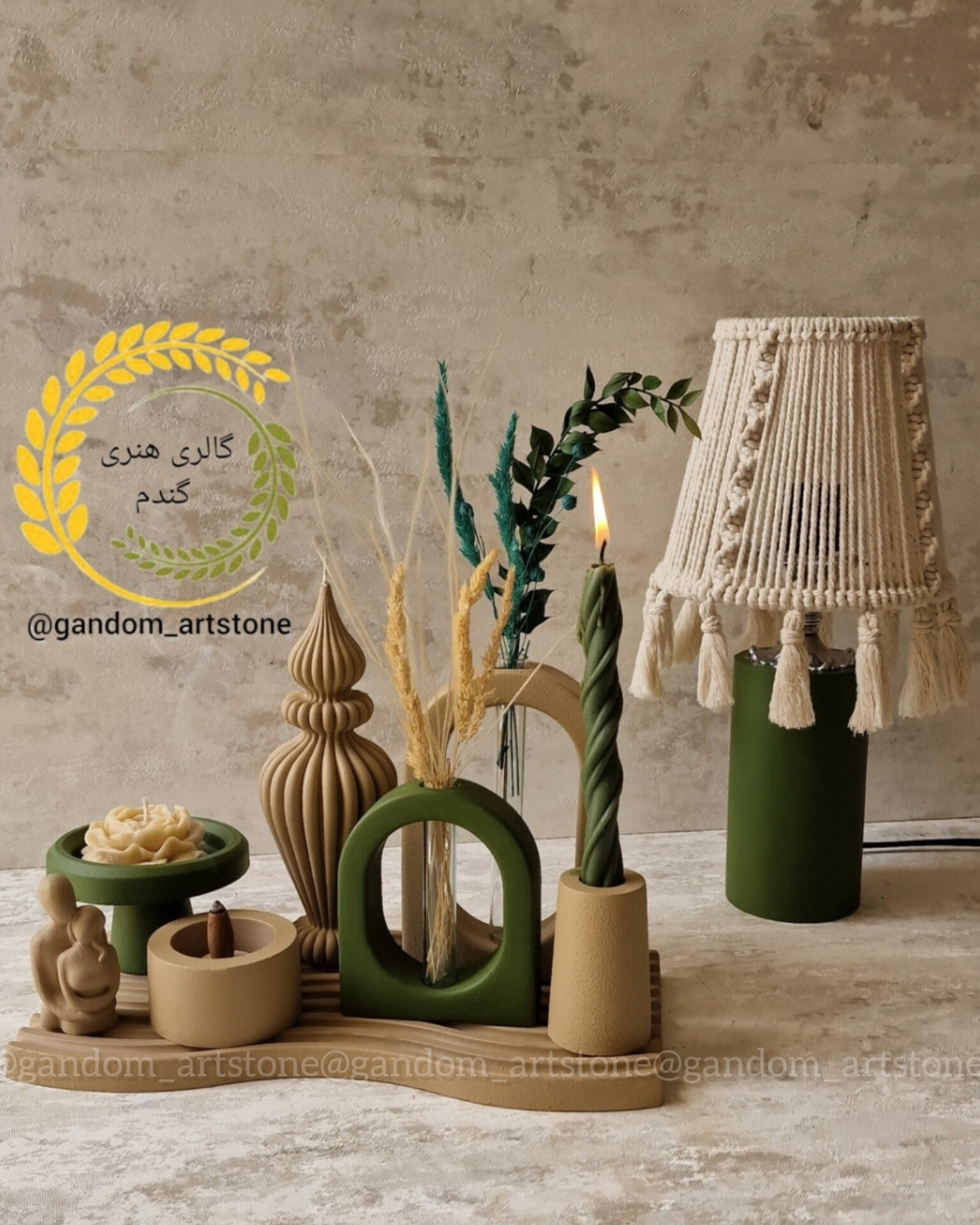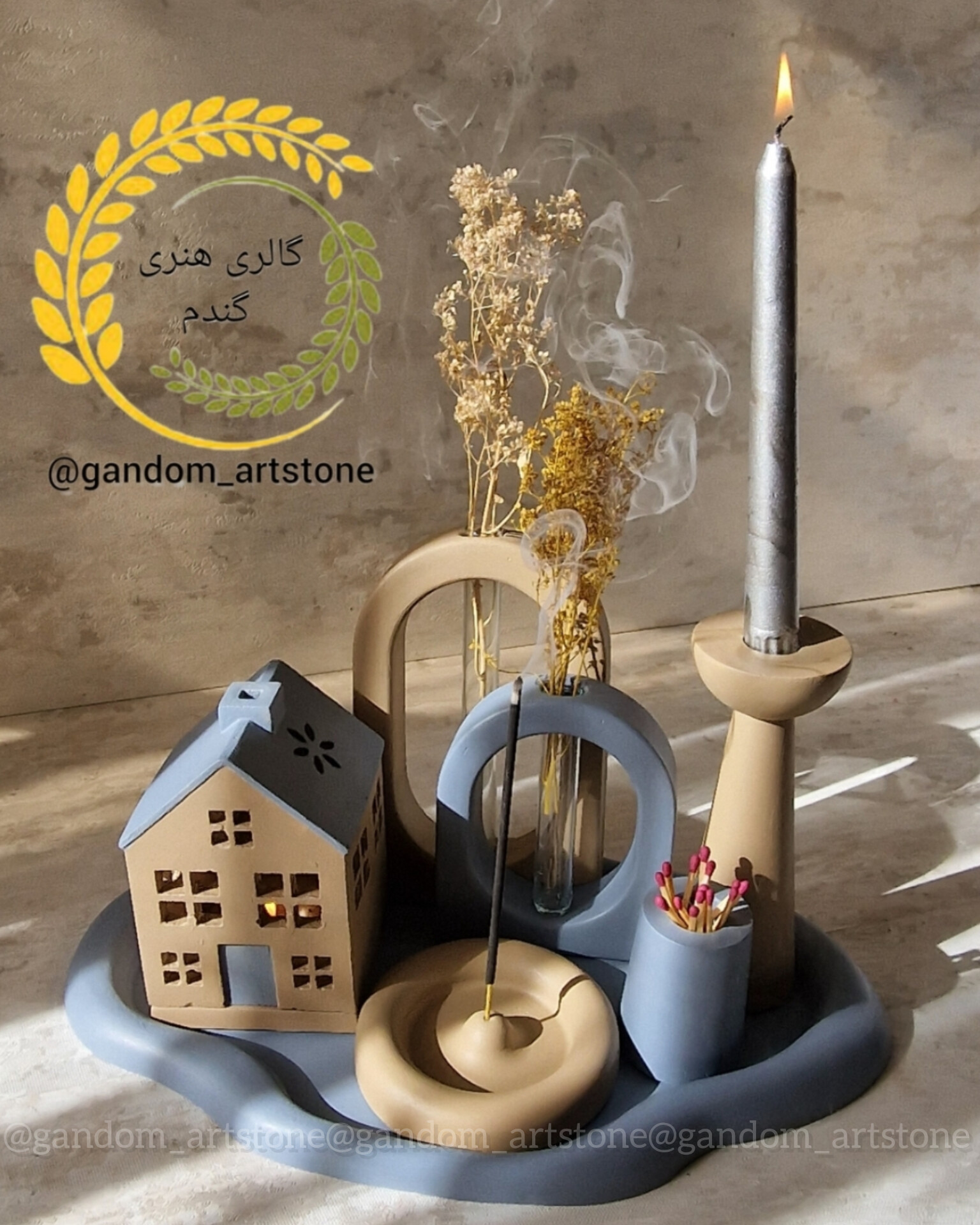 ست دکوری کامل با سینی بتنی و تسبیح و شمع