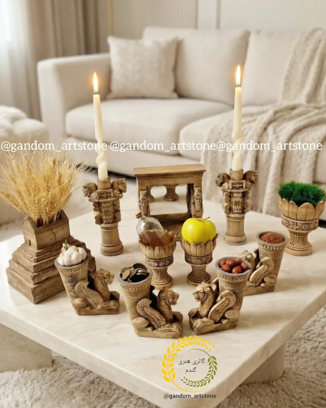 ست دکوری کامل با شمع ها و رانر و تسبیح دکوراتیو و آباژور