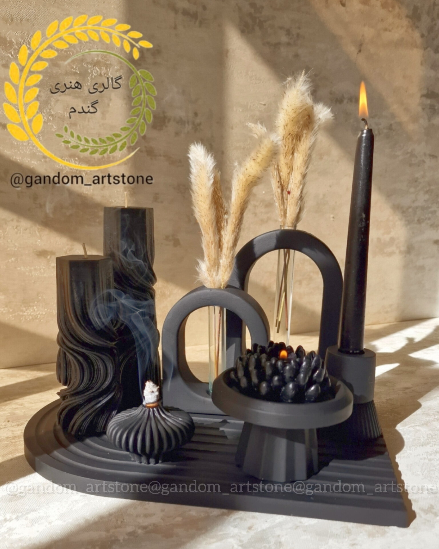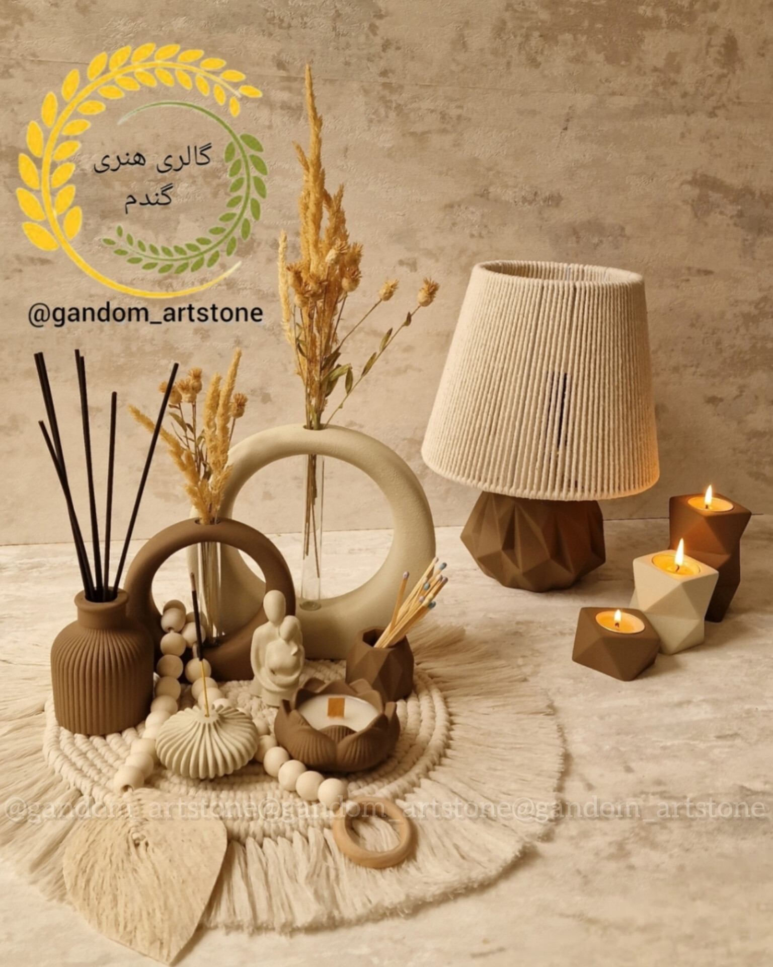 ست کامل با شمع ها گل خشک و تسبیح دکوراتیو