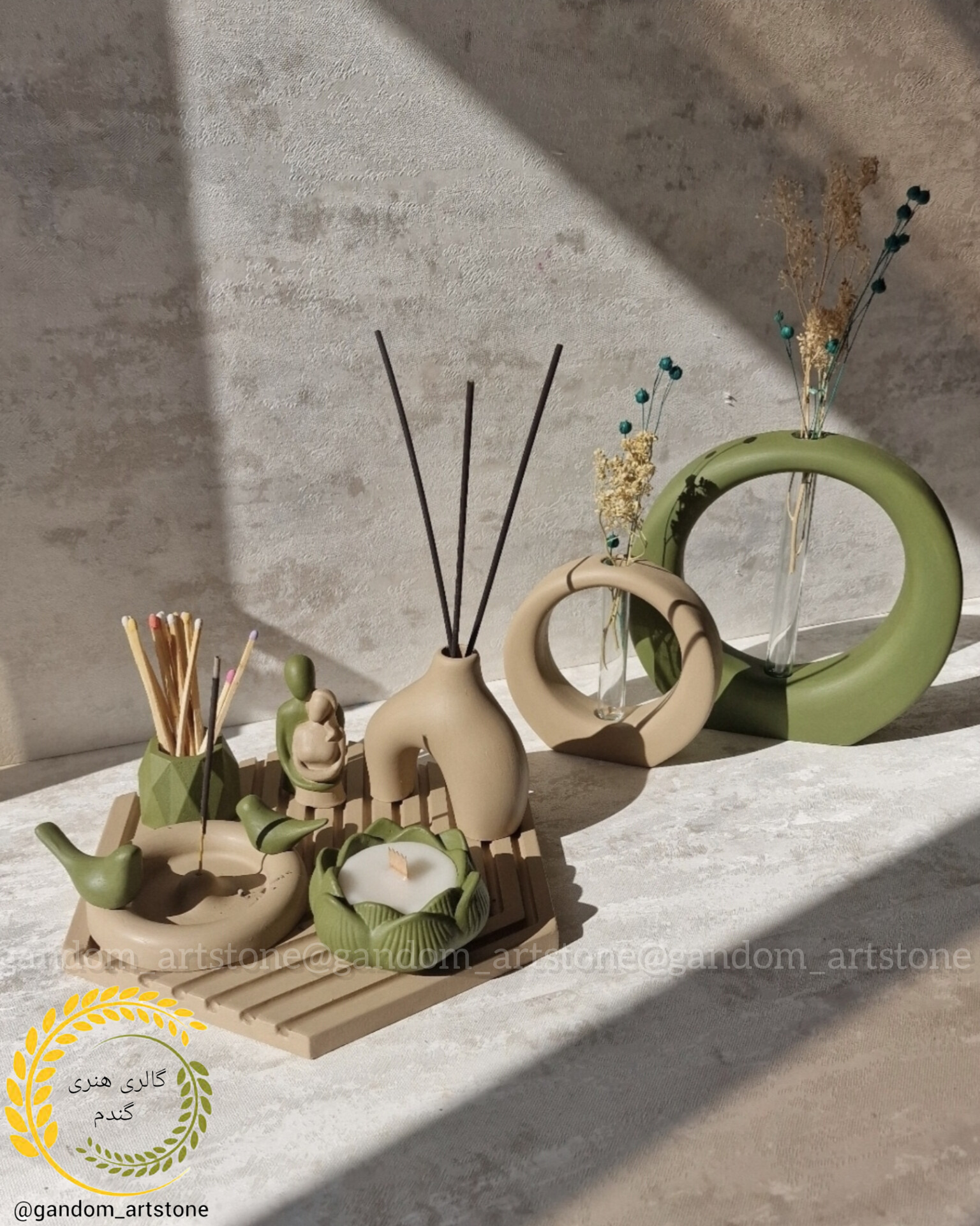 ست دکوری8 تیکه بهمراه شمع و گل خشگ و تسبیح دکوراتیو