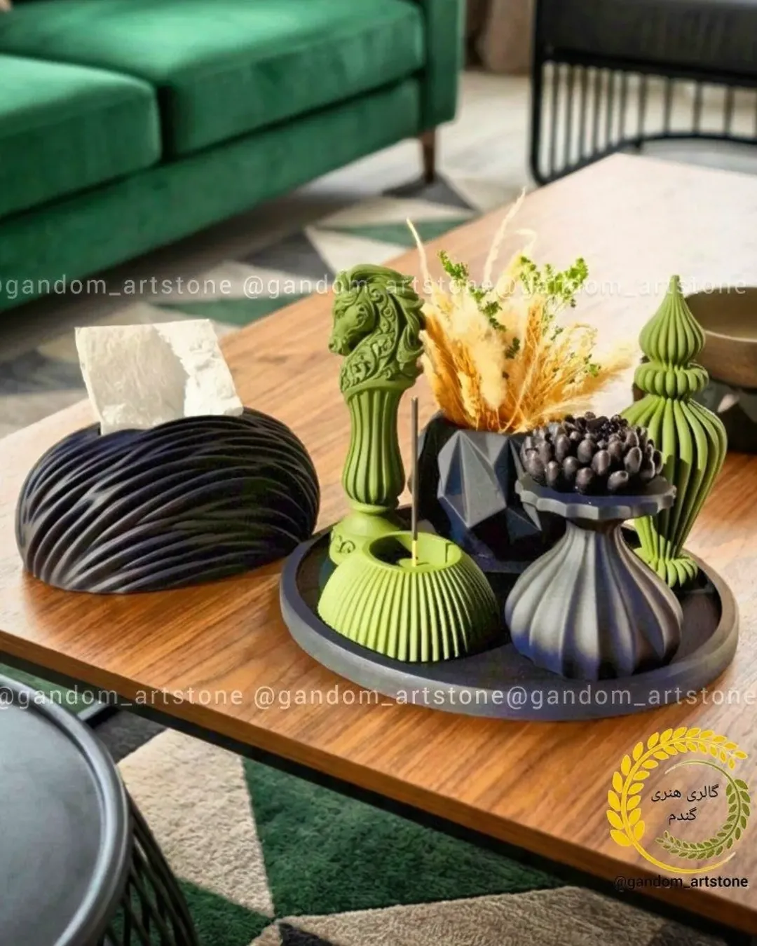 ست دکوری کامل با شمع و جا دستمال کاغذی