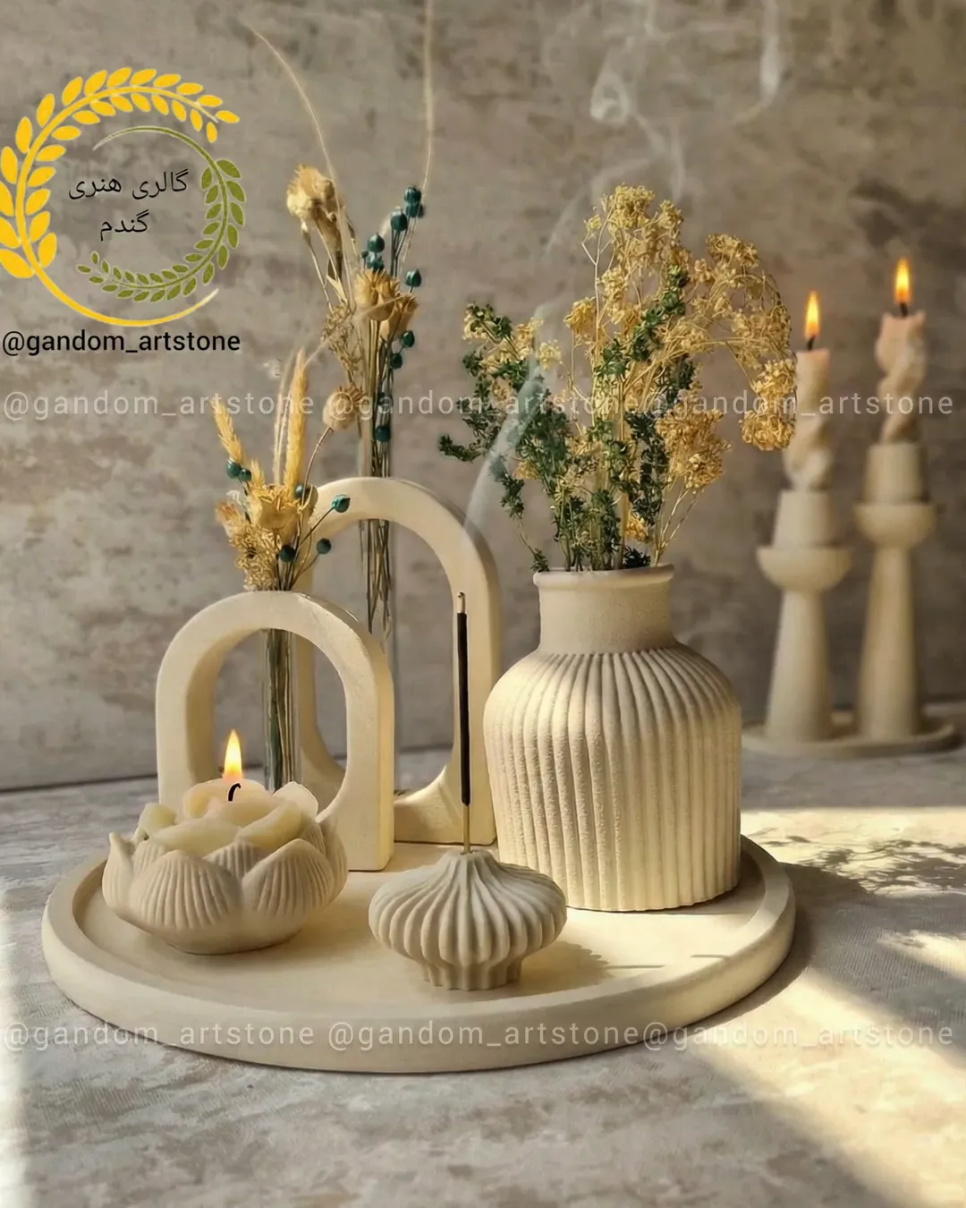 ست شمع و گل خشک ۳ تیکه