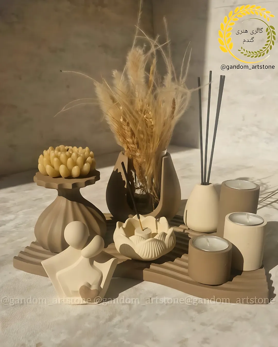 ست دکوری دست‌ساز بهمراه شمع و گل خشگ