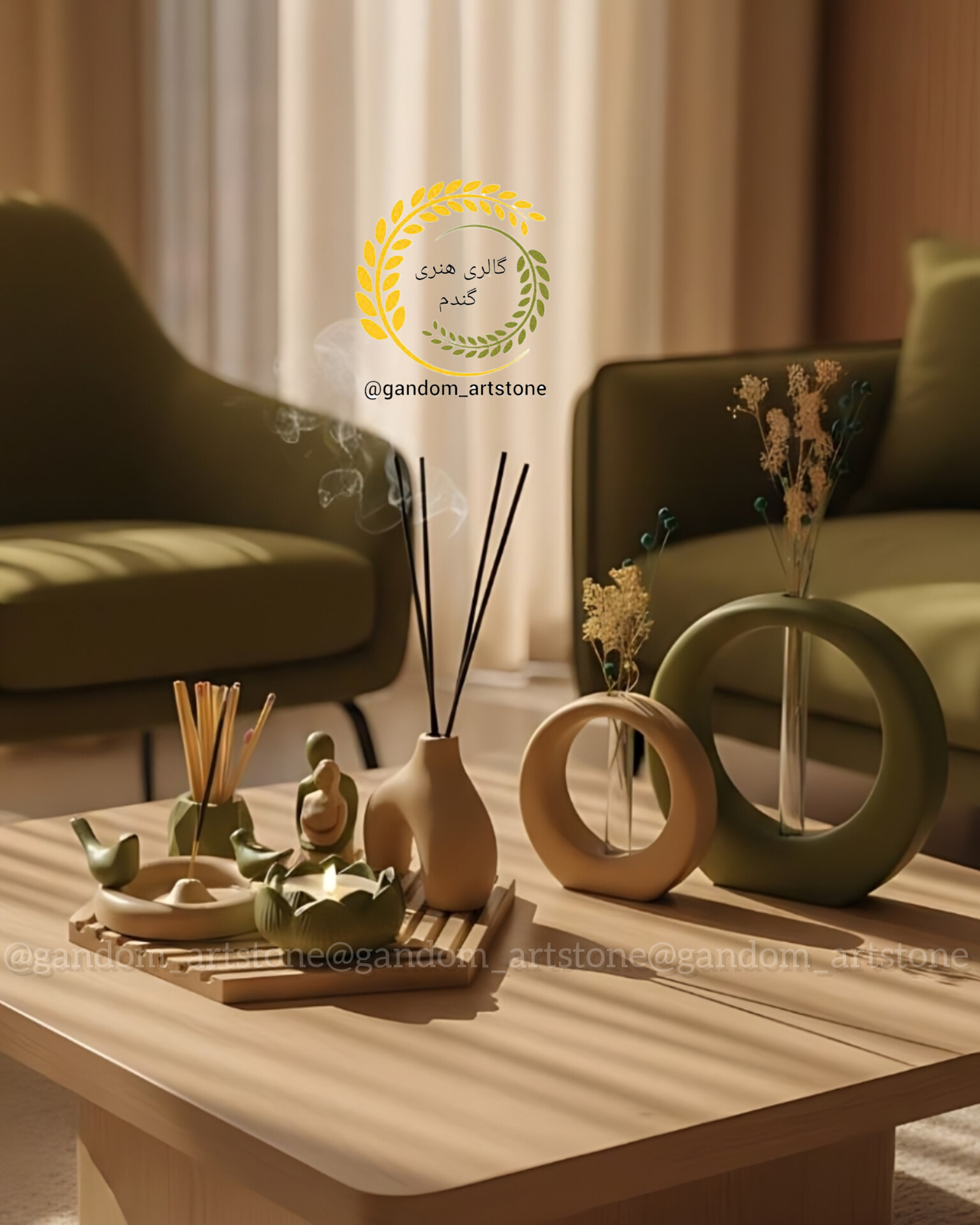ست کامل دکوری شامل گل خشک و شمع و کبریت