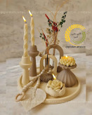 ورق بزن و از نمای نزدیک جزئیات و قشنگی کار رو ببین ست کامل با شمع ها و تسبیح دکوراتیو انتخاب رنگ به سلیقه مشتری ارسال با تضمین سلامت و کیفیت