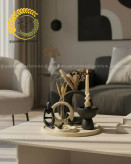ست دکوری دکوراتیو مناسب میز جلو مبلی با شمع و دسته گل ۵۵ ت
