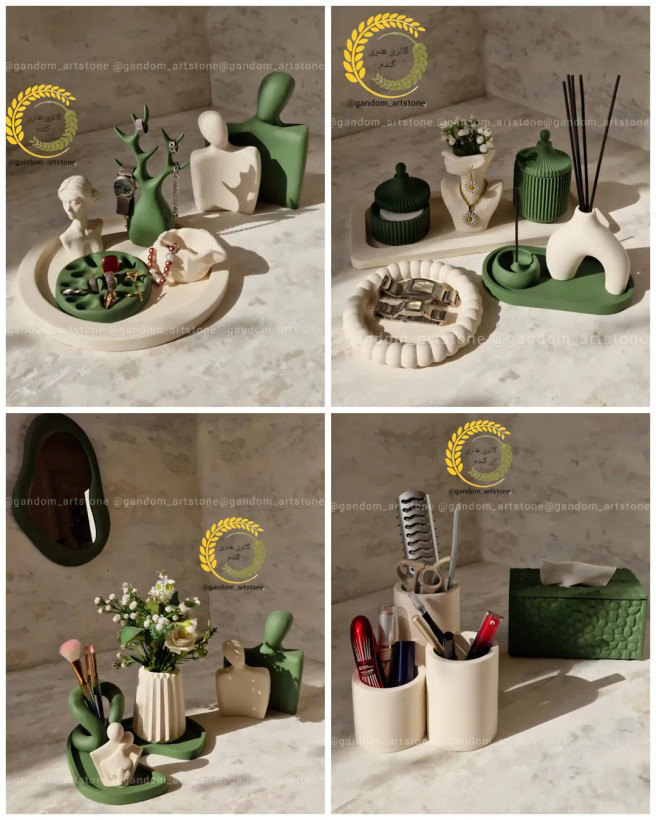 ست دکوری نظم دهنده میز آرایش 28 تیکه با ترکیب دو رنگ کرم استخونی و سبز
