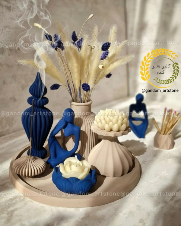 ست دکوری مناسب جلو مبلی عروس ترکیب دو رنگ کرم نسکافه ای و آبی درباری